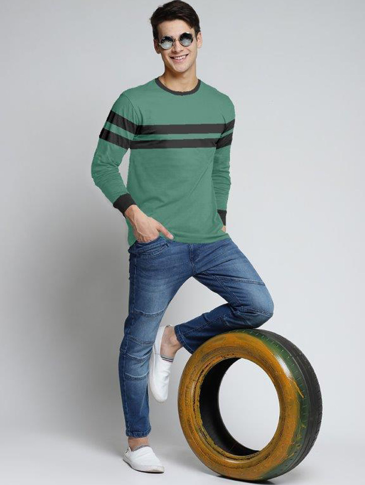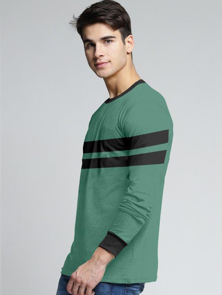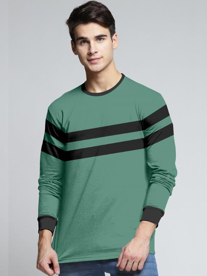 | Product Name | Greenish with Black Stripe T-Shirt with Full Sleeve |