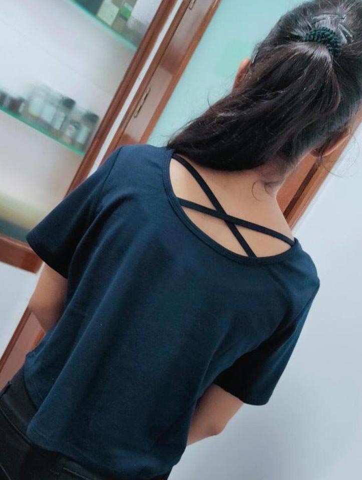 | Description | Round neck top, back neck cross straps, Hem low and high design |
