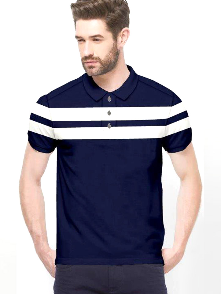 | Product Name | Navy With White Stripe Design Polo T-shirt |
