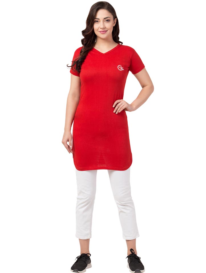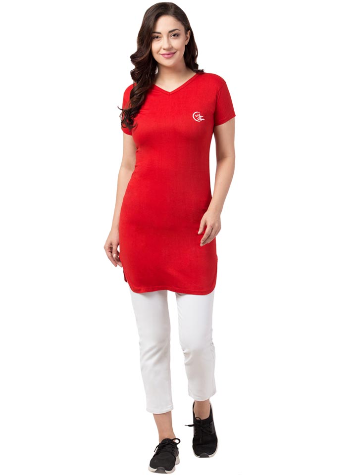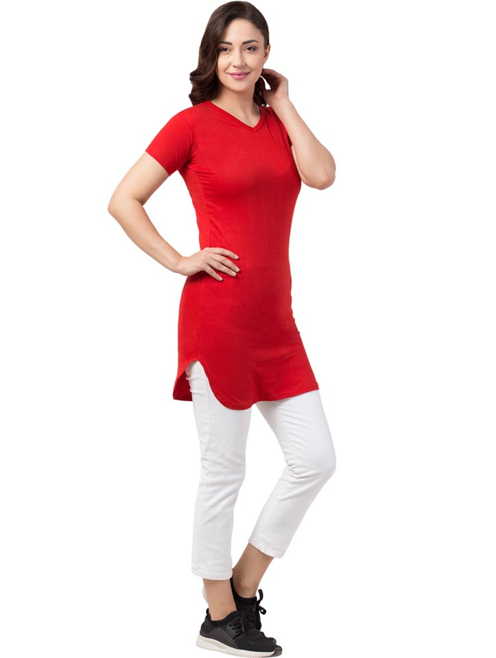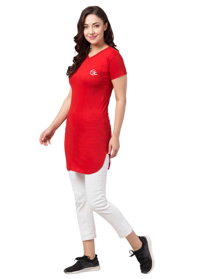 | Description | Red Longline T-Shirt, V-Shape Neck, Short Sleeve |
